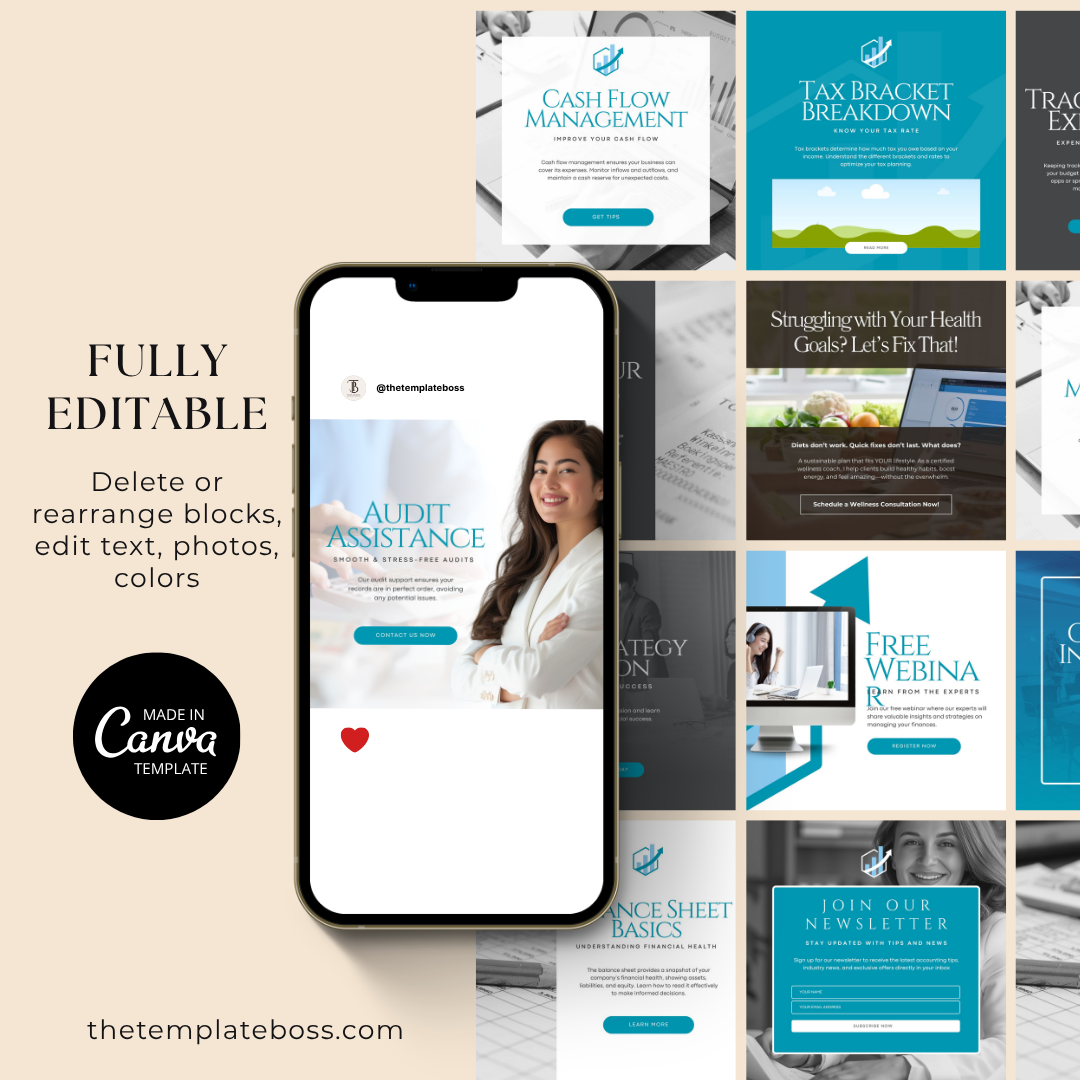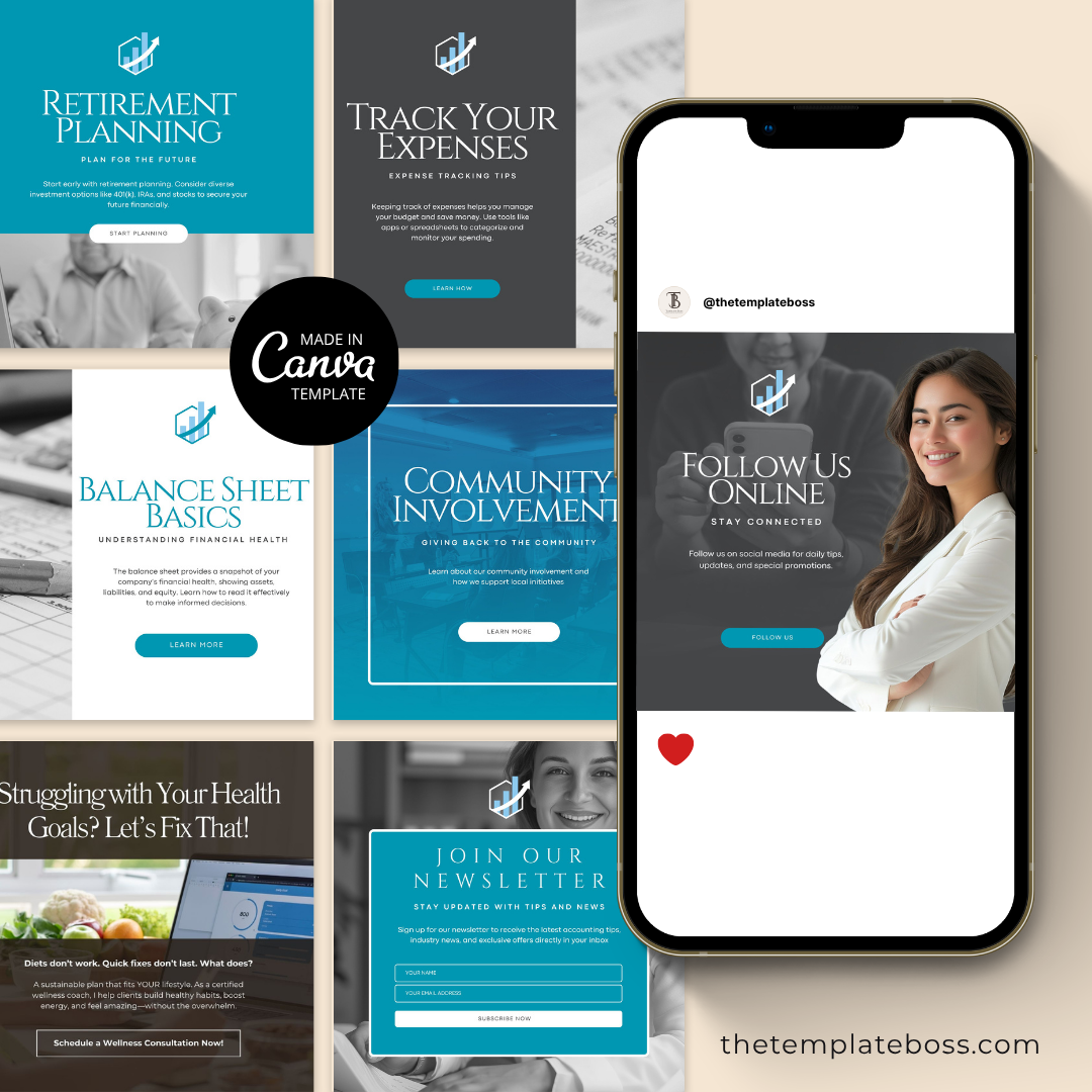 This Accountant Social Media Templates pack helps you stay visible while positioning you as the go-to expert.