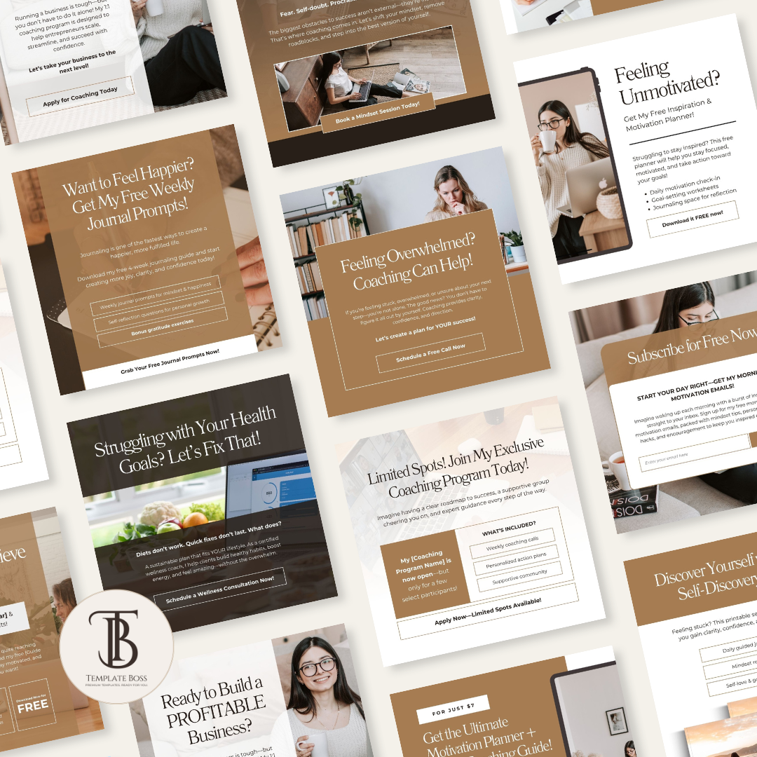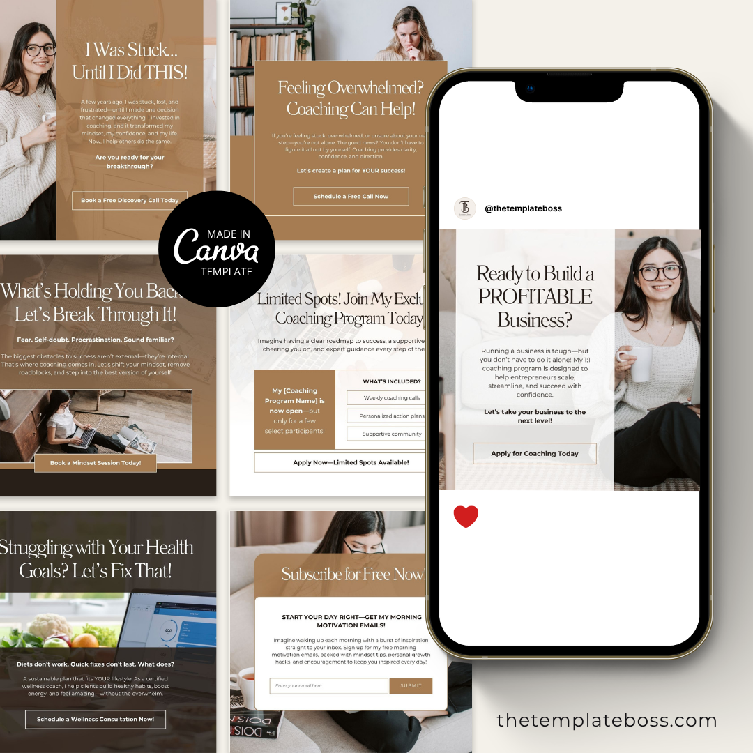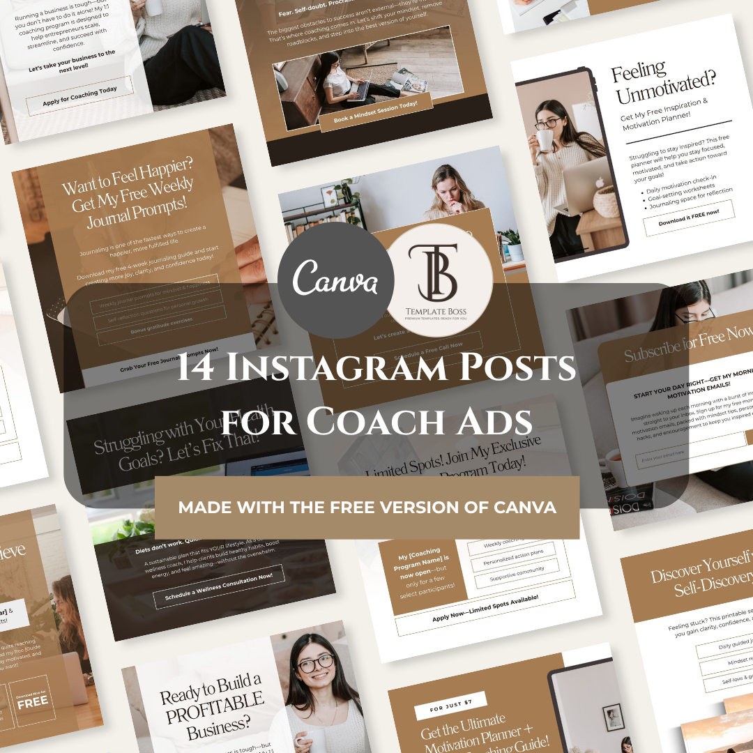 This 14 Coach Ads Social Media Templates pack is built for that.